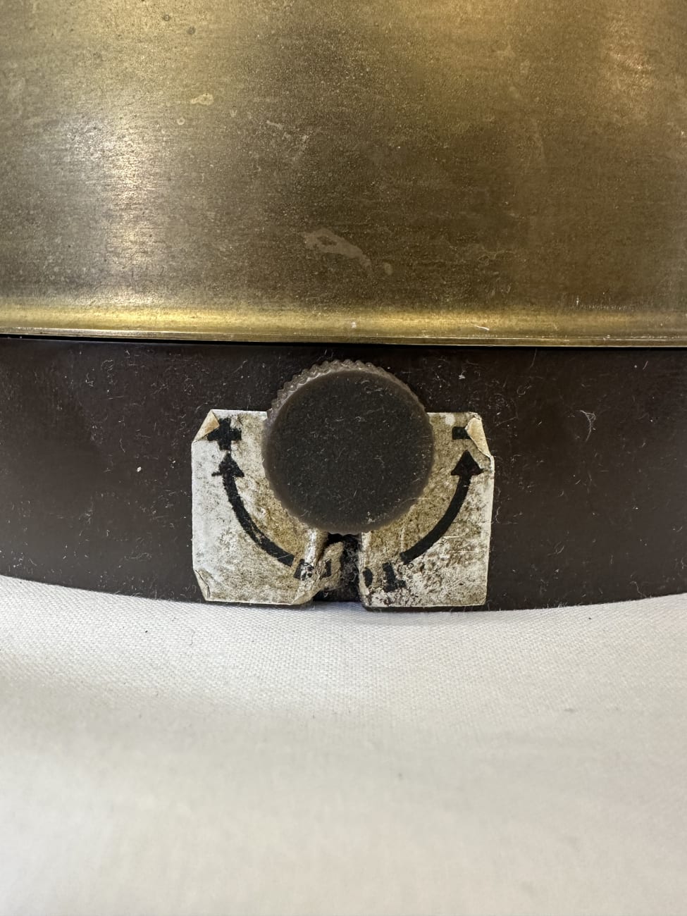 Gebrauchter Zustand mit altersbedingten Gebrauchsspuren und Patina. Mechanik reagiert und Zeiger bewegt sich.