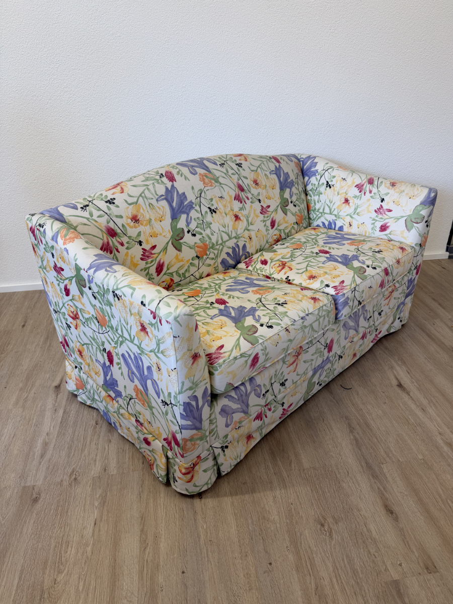 Florale Aquarellblüten, weiche Rundungen und dieses typische Landhaus Gefühl: hinsetzen und sofort gemütlich. Der Bezug erinnert an englische Cottage Interiors, bunt aber harmonisch, verspielt aber nicht kitschig. Genau das richtige Stück für Räume, die Wärme und Persönlichkeit brauchen. Weil das Sofa kompakt ist, passt es auch dort, wo ein grosses Modell zu viel wäre.