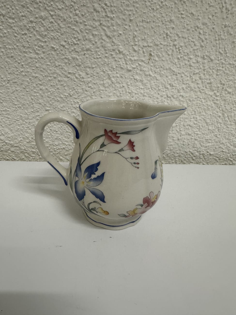 Feines Porzellan mit leicht cremefarbenem Ton und verspielten Blumenranken in Blau, Rosa und Gelb. Die Serie Riviera von Villeroy & Boch wirkt ruhig, freundlich und passt perfekt in den Landhausstil. Typisch sind die weich geschwungenen Formen und die dezente Linienführung am Rand. Das Set ist vielseitig einsetzbar, ob für den täglichen Tee oder als stimmige Ergänzung im offenen Regal.