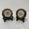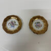 Feines Limoges-Porzellan, reich vergoldet und mit zarter Handmalerei veredelt. Diese beiden kleinen Zierteller stammen aus Frankreich und zeigen klassische florale Motive in Rosa-, Blau-, Grün- und Goldtönen. Der gewellte Rand mit breitem Goldfond und die filigranen Goldornamente rahmen das zentrale Blumenmotiv elegant ein. Auf der Rückseite sind beide Stücke mit Limoges France sowie der handschriftlichen Kennzeichnung LM 81 versehen, was auf eine Fertigung um 1981 hindeutet. Ideal als dekoratives Paar für Vitrine, Wand oder Tisch.