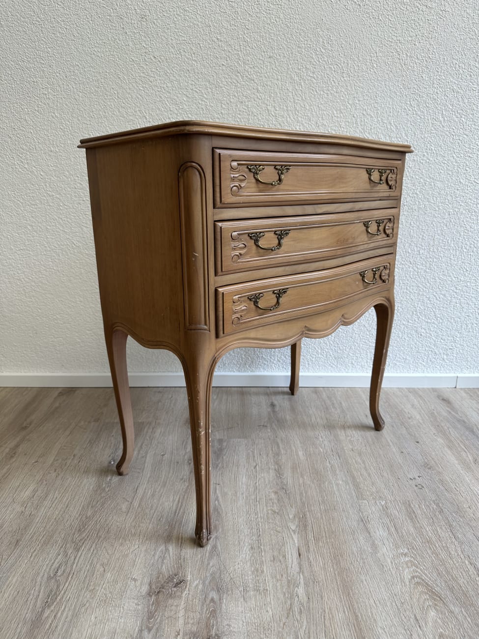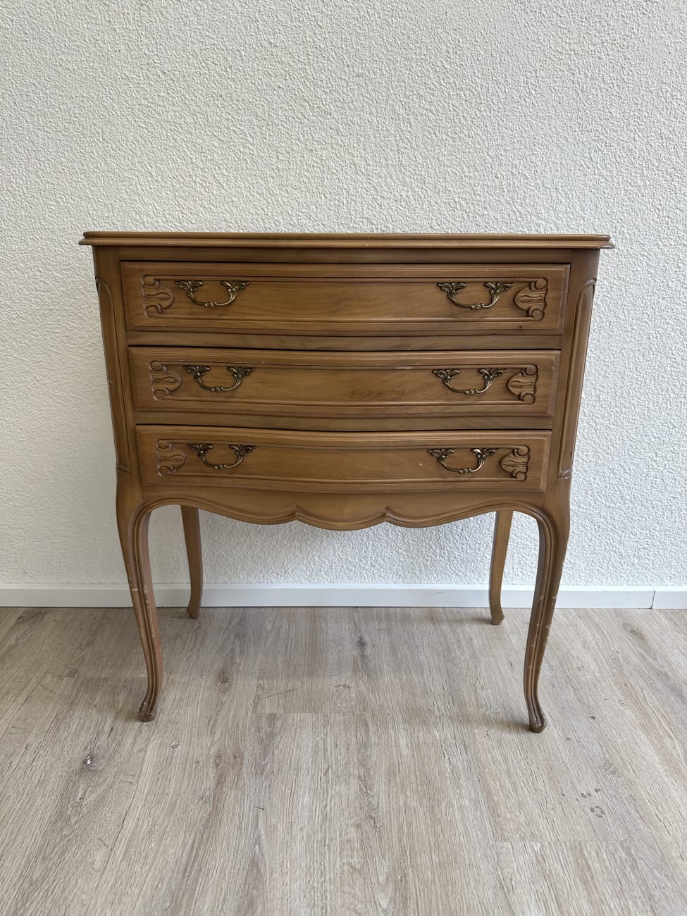 Vintage Louis XV Stil kleine Kommode aus Holz mit 3 Schubladen und geschwungenen Beinen