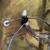 Die Verkabelung ist vorhanden, sollte jedoch fachgerecht geprüft werden. Eine der Halterungen zeigt altersbedingte Gebrauchsspuren, was den authentischen Vintage Charakter unterstreicht.