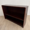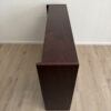 Dunkler Rotbraunton, ruhige Maserung und eine klare 70er Jahre Linie. Dieses Vintage Mid Century Regal wirkt schlicht, hochwertig und passt in viele Räume, ohne dominant zu sein. Die Seiten sind leicht zurückgesetzt, die Form bleibt sauber und funktional. Zwei Ebenen bieten Platz für Bücher, Ordner, Deko oder Technik. Die Lochreihen zeigen: Tablare lassen sich in der Höhe flexibel setzen.