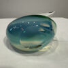 Das Stück wurde nach traditioneller Murano Technik gefertigt, bei der Farbglas und Klarglas in flüssigem Zustand verschmolzen werden. Durch den massiven Glaskörper und die makellose Transparenz entfaltet sich ein faszinierendes Spiel von Licht und Tiefe.