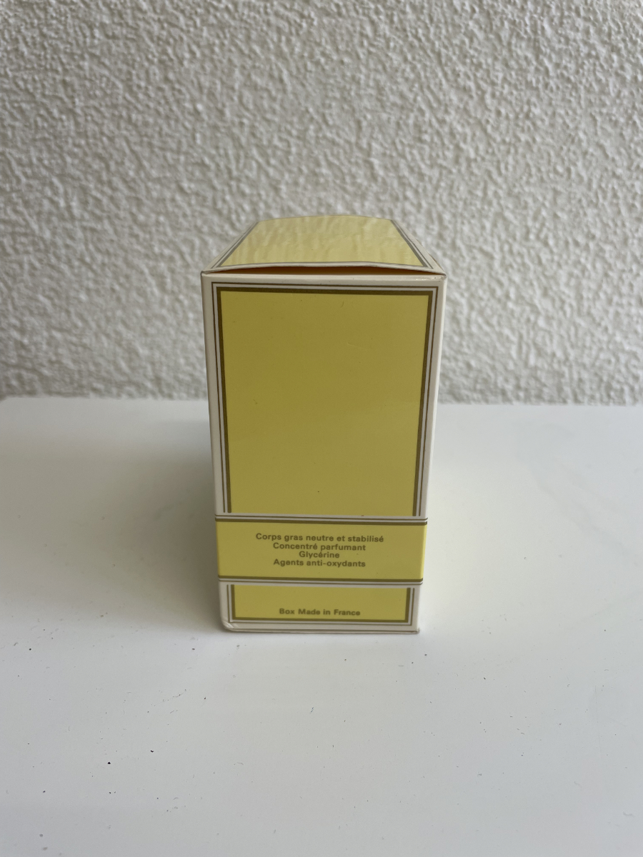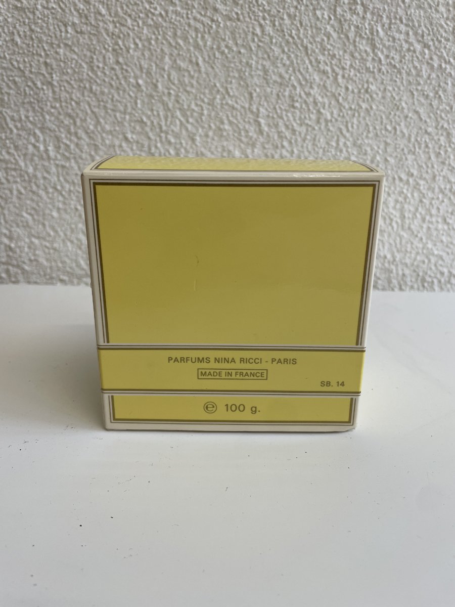 Originalverpackte Parfumseife von Nina Ricci aus der Serie L’Air du Temps. Die gelbe Box ist vorhanden, dazu die weisse Dose mit goldfarbenen Tauben. Ideal für Vitrine, Nostalgie Ecke oder als Geschenk für Fans ikonischer Duftklassiker.