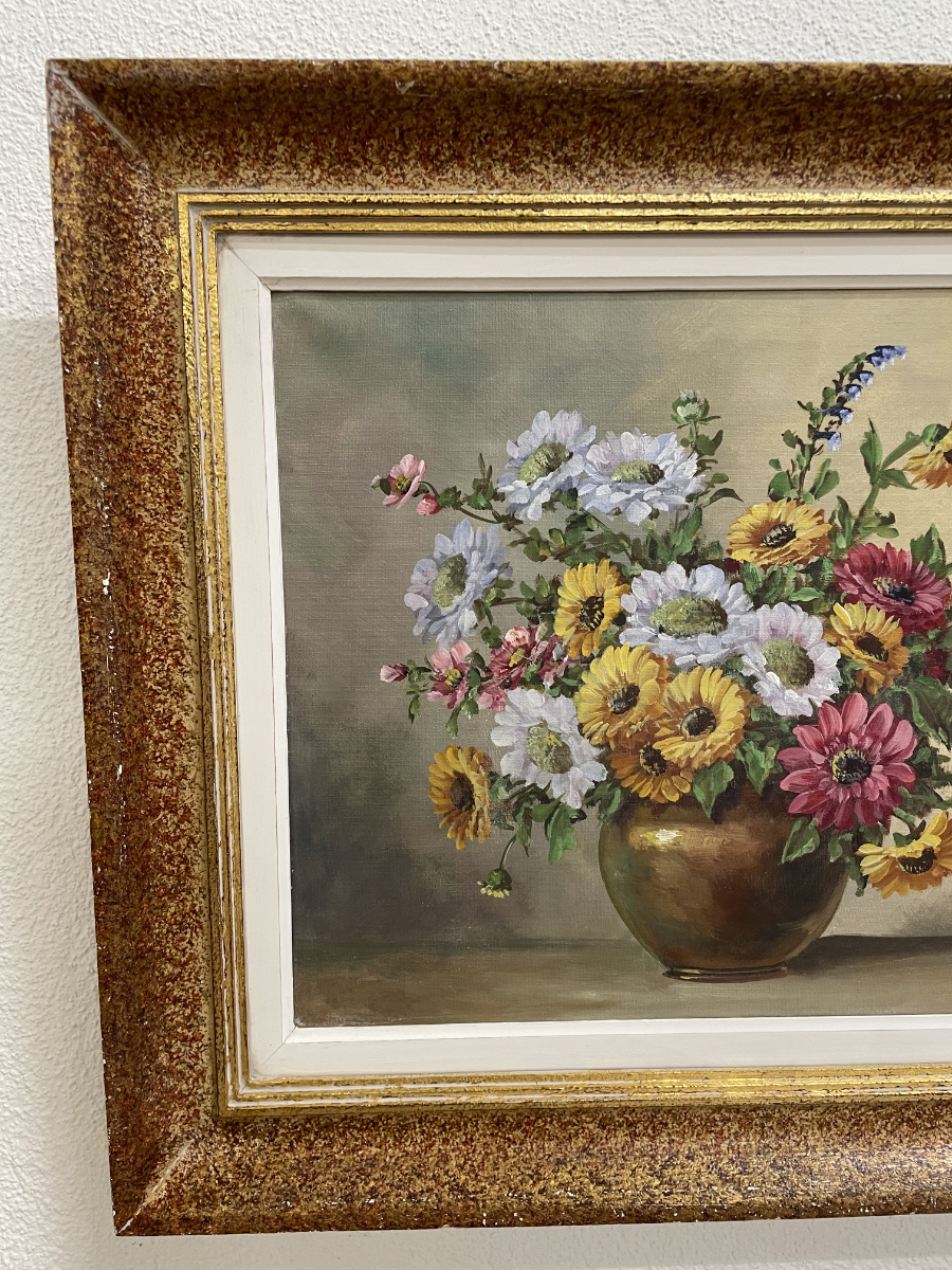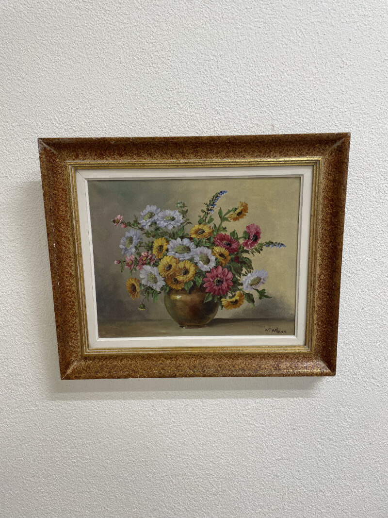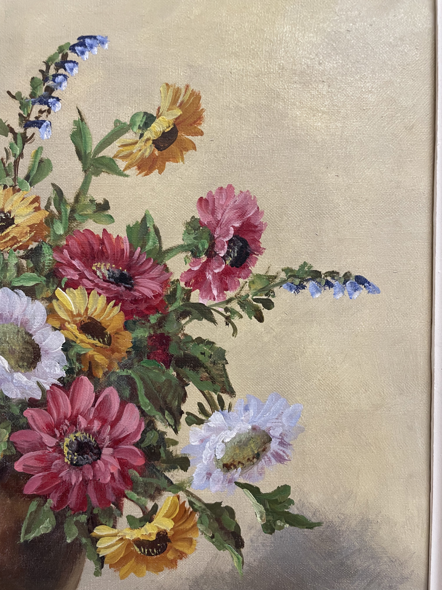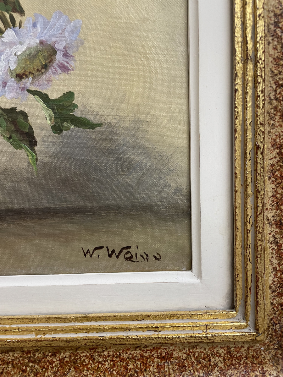 Vintage Ölgemälde Blumenstillleben auf Leinwand, W. Weiss, 66 x 56 cm