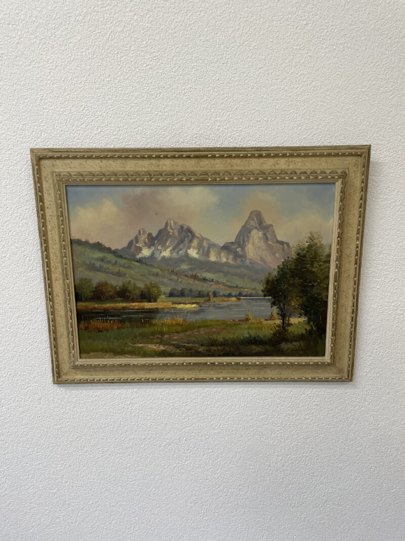 Lauerzensee, Wiesen und im Hintergrund die markanten Mythen: Dieses Vintage-Ölgemälde zeigt eine typische Zentralschweizer Landschaft mit ruhiger Stimmung und schönen Farbübergängen. Sanfte Wolken, spiegelndes Wasser und die Bergkulisse geben dem Bild Tiefe. Der helle, profilierte Holzrahmen passt perfekt dazu und wirkt hochwertig, ohne aufdringlich zu sein.