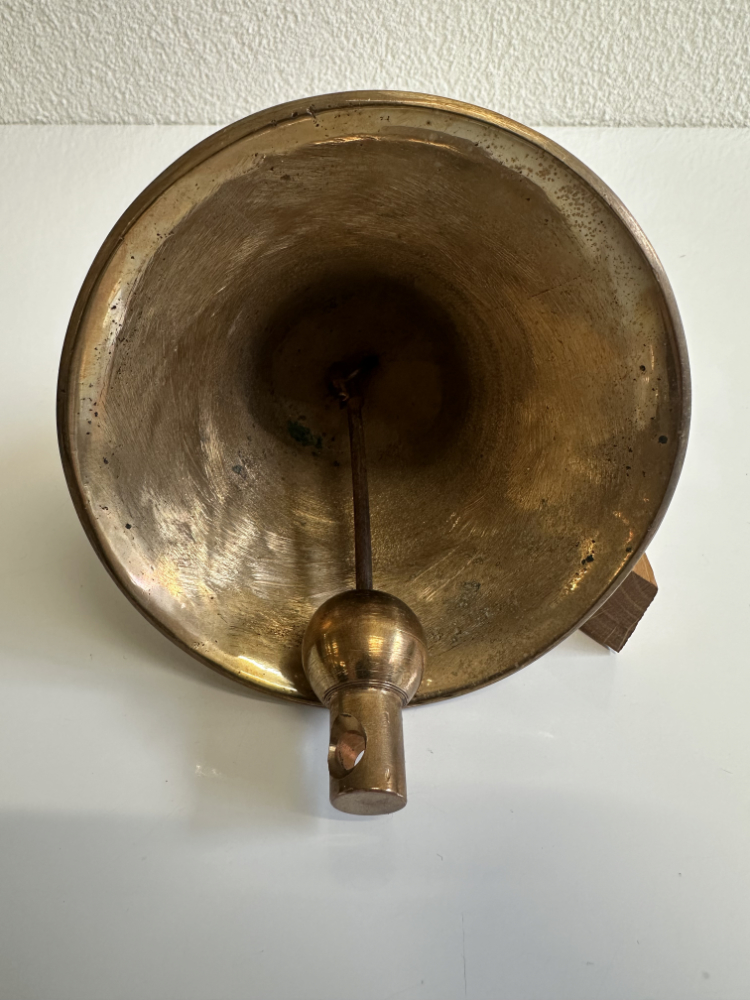 Schwerer Messingkörper mit warmer Patina, dazu ein kräftiges Holzjoch als Trage- und Aufhängungsteil. Diese originale Smålandsklockan stammt aus Schweden und trägt die Prägung „Ekbergs Malmö“. Der Klang ist typisch voll und sonor, optisch wirkt sie rustikal und hochwertig. Ideal, wenn du etwas Echtes suchst, das nicht nach Deko aussieht, sondern nach Geschichte und Handwerk.