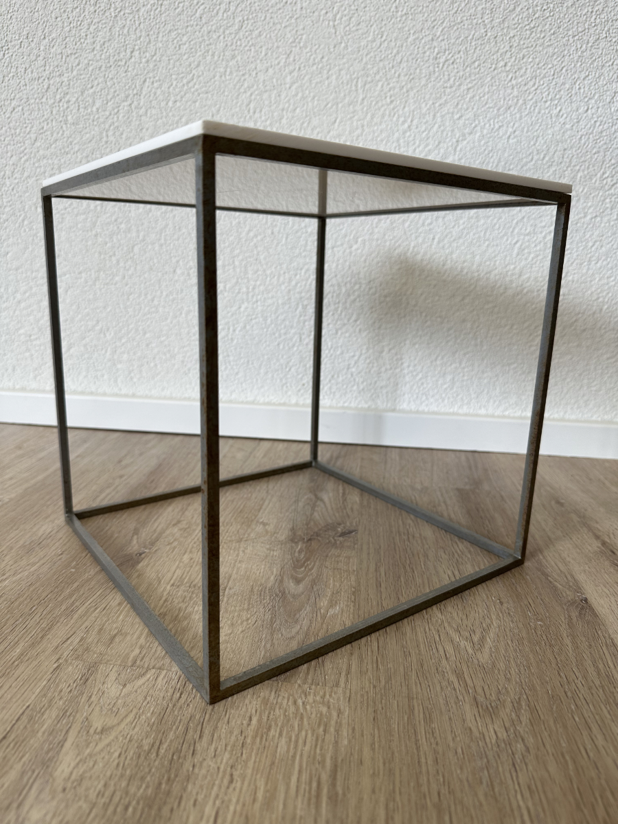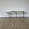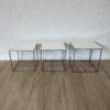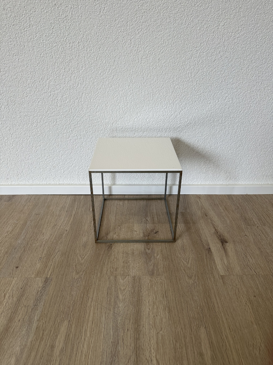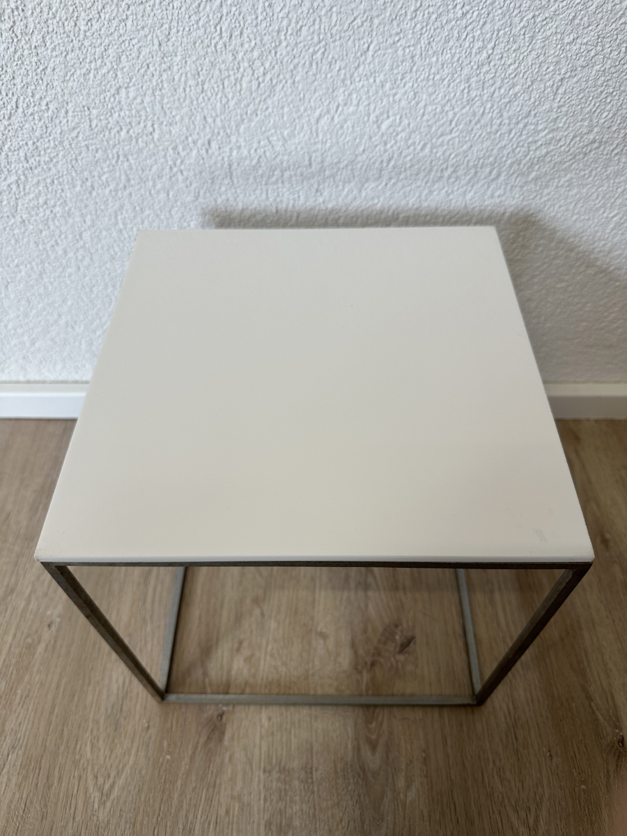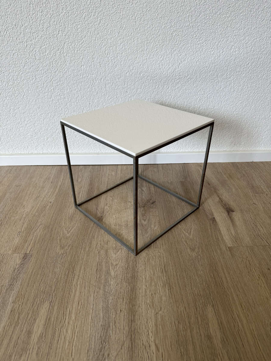 Drei kubische Beistelltische, die sich wie ein Baukastensystem ineinander schieben lassen. Das PK71 Set von Poul Kjaerholm gilt als Designklassiker aus dem skandinavischen Modernismus und wirkt trotz seiner klaren Geometrie leicht und elegant. Weisse Acrylplatten oben, ein schlanker Metallrahmen unten, genau die Mischung aus Funktion und puristischem Design, die in Wohnzimmer, Büro oder Atelier sofort passt.
