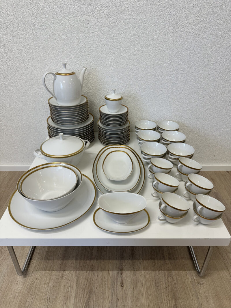 Vintage Porzellan Tafelservice Arzberg Form 2025 mit Goldrand, ca. 1960er Jahre