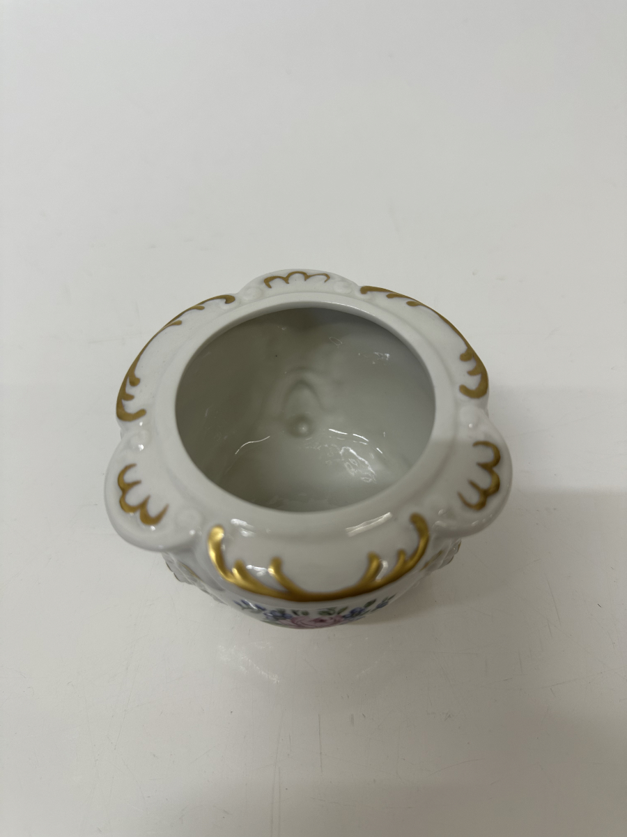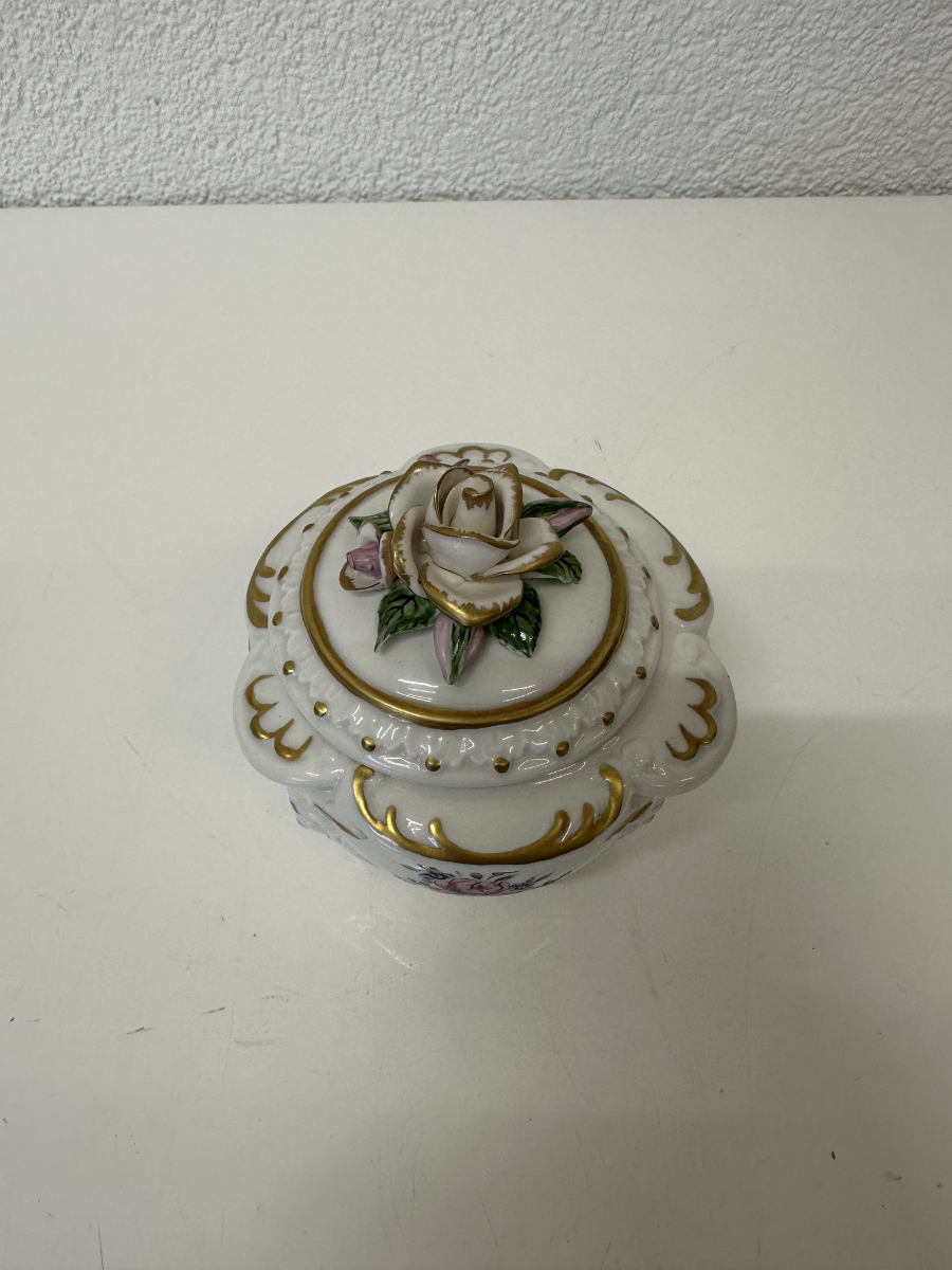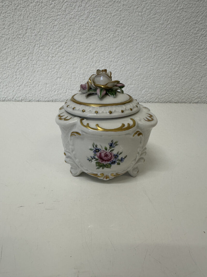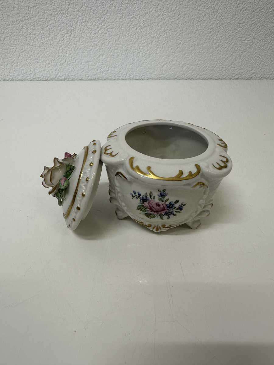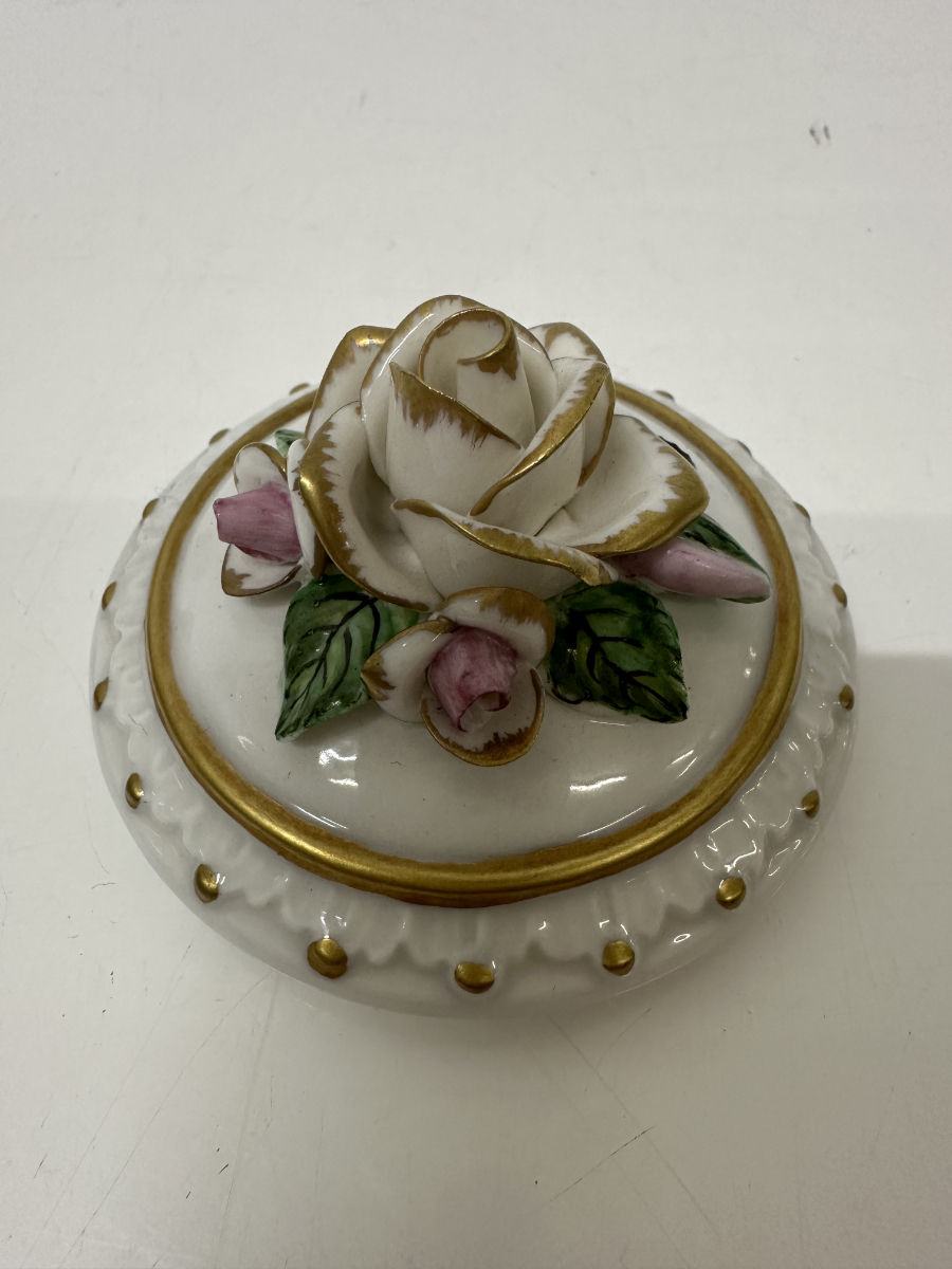 Vintage Rudolf Kämmer Barock Deckeldose aus Porzellan mit Rosenrelief