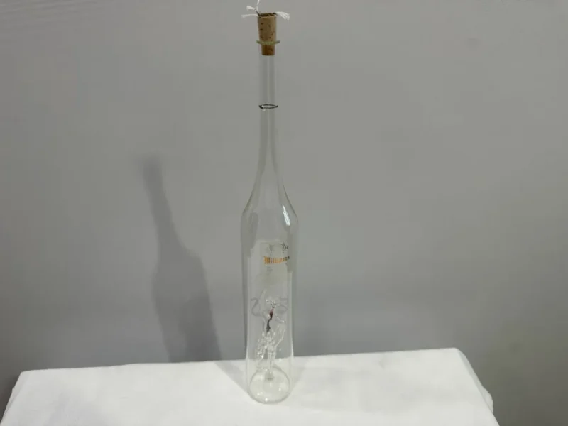 Vintage Schnapsflasche mit einer Teufel Glasfigur