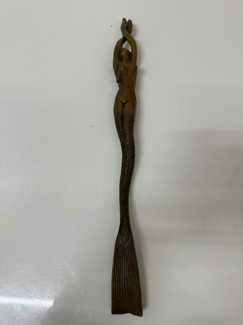 ✅ Figürlicher Schuhlöffel mit Meerjungfrau-Motiv, geschnitzt aus Holz