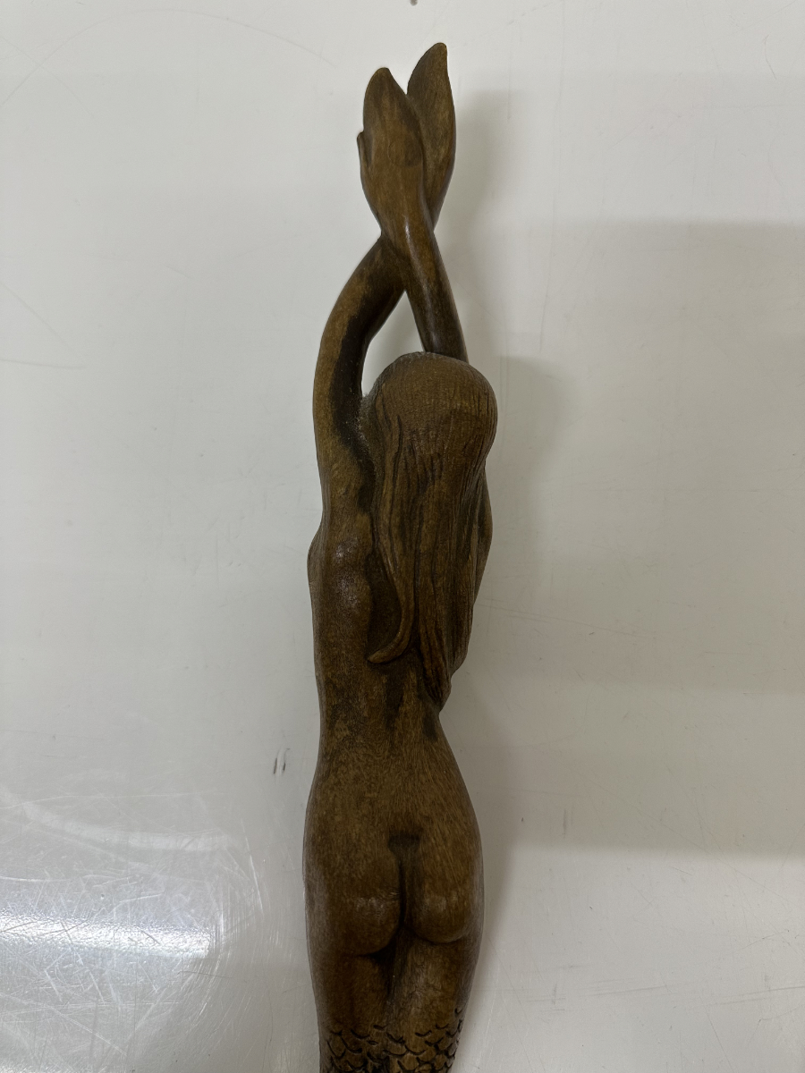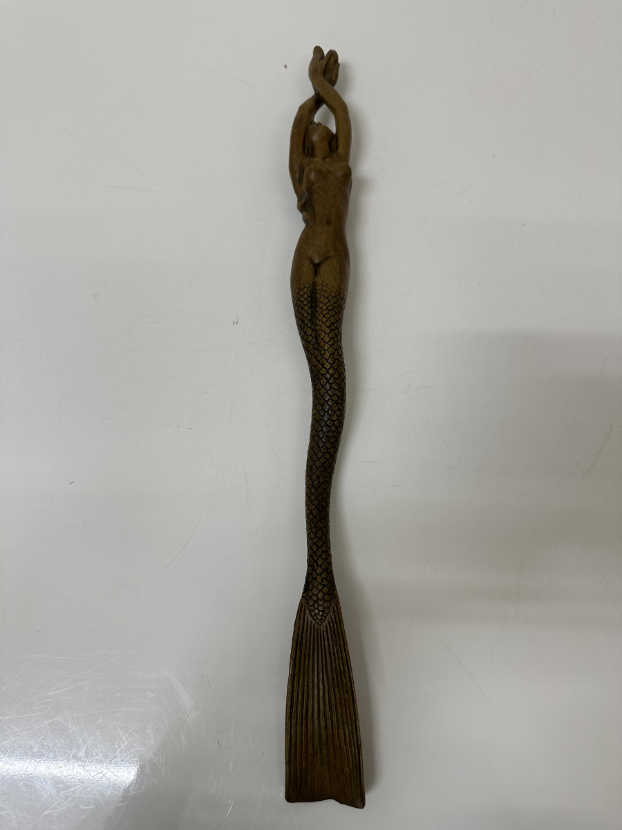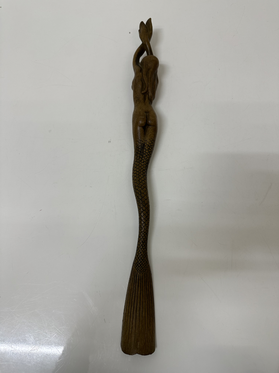Vintage Schuhlöffel Meerjungfrau aus Holz, geschnitzt, Folk Art, ca. 1960er
