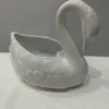 Dieser Vintage-Keramikschwan befindet sich in einem guten bis sehr guten Zustand, ausgeführt in einem eleganten Weiß zeichnet er sich durch seine ansprechende Größe aus. Das Innere des Schwans ist ausgehöhlt, wodurch er vielseitig einsetzbar ist – sei es als dekoratives Element, als Blumentopf oder als Schale für diverse Gegenstände. Seine Robustheit macht ihn zu einem attraktiven Dekorationsstück, das auf jedem Möbelstück in einer Wohnung hervorragend zur Geltung kommt.