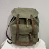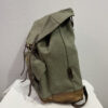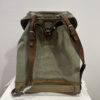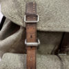 Originaler Schweizer Armeerucksack aus den 1950er Jahren im charakteristischen „Pfeffer und Salz“-Design. Das fein melierte Canvas-Gewebe in Grau-Grün war typisch für die Ausrüstung der Schweizer Armee nach dem Zweiten Weltkrieg. Zusammen mit den massiven Lederriemen, dem verstärkten Lederboden und den Metallschnallen zeigt dieser Rucksack die robuste Handwerksqualität jener Zeit.