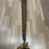 Dieser prachtvolle Schweizer Staatsriemen stammt aus den 1960er Jahren und wurde für festliche Anlässe wie Alpaufzüge, Viehschauen oder traditionelle Umzüge verwendet. Das lange Lederband ist mit gewölbten Messingbeschlägen verziert und seitlich mit einer farbigen Wollborte in Rot-, Grün- und Beigetönen besetzt. Am unteren Ende schliesst eine grosse, handgefertigte Wollquaste in Gelb, Schwarz und Weiss den Riemen ab, ein klassisches Merkmal traditioneller Festtrachten.