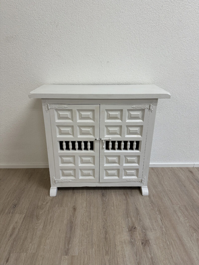 Vintage Spanische Kommode in Weiss mit 2 Türen und 3 Ablageböden