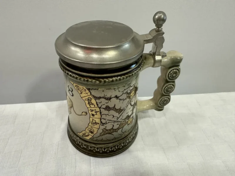 Vintage Stier Horoskop Bierkrug von Gerz. Dieser spezielle Bierkrug mit Zinndeckel ist in einem sehr guten Zustand. Schätzungsweise wurde dieser in den 80er bei Gerz produziert. Abgebildet ist ein Stierhoroskop.
