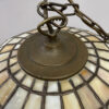 Die Lampe hängt an einer soliden Messingkette mit patinierter Oberfläche und passendem Baldachin. Das Anschlusskabel ist vorhanden und kann von einem Fachmann montiert werden. Dieses Modell wurde nach traditionellen Tiffany-Techniken gefertigt, ist aber eine hochwertige handgearbeitete Reproduktion, kein Original der Tiffany Studios New York.