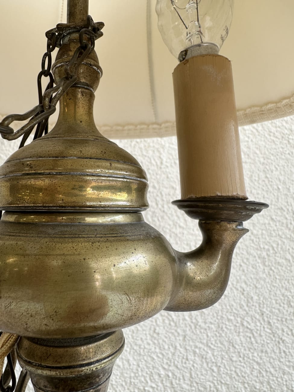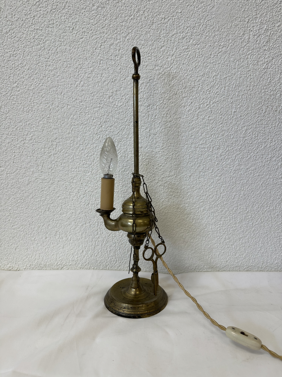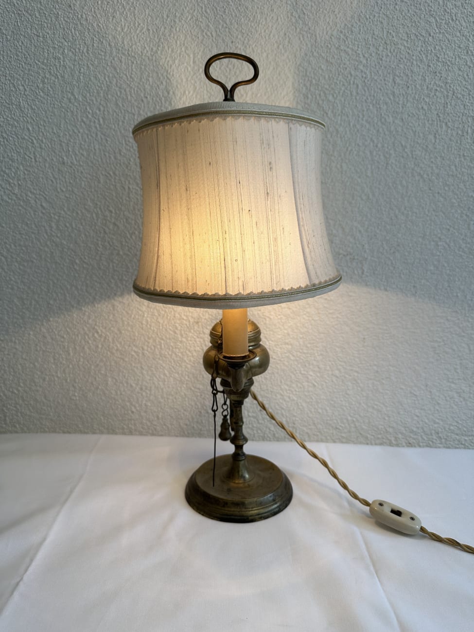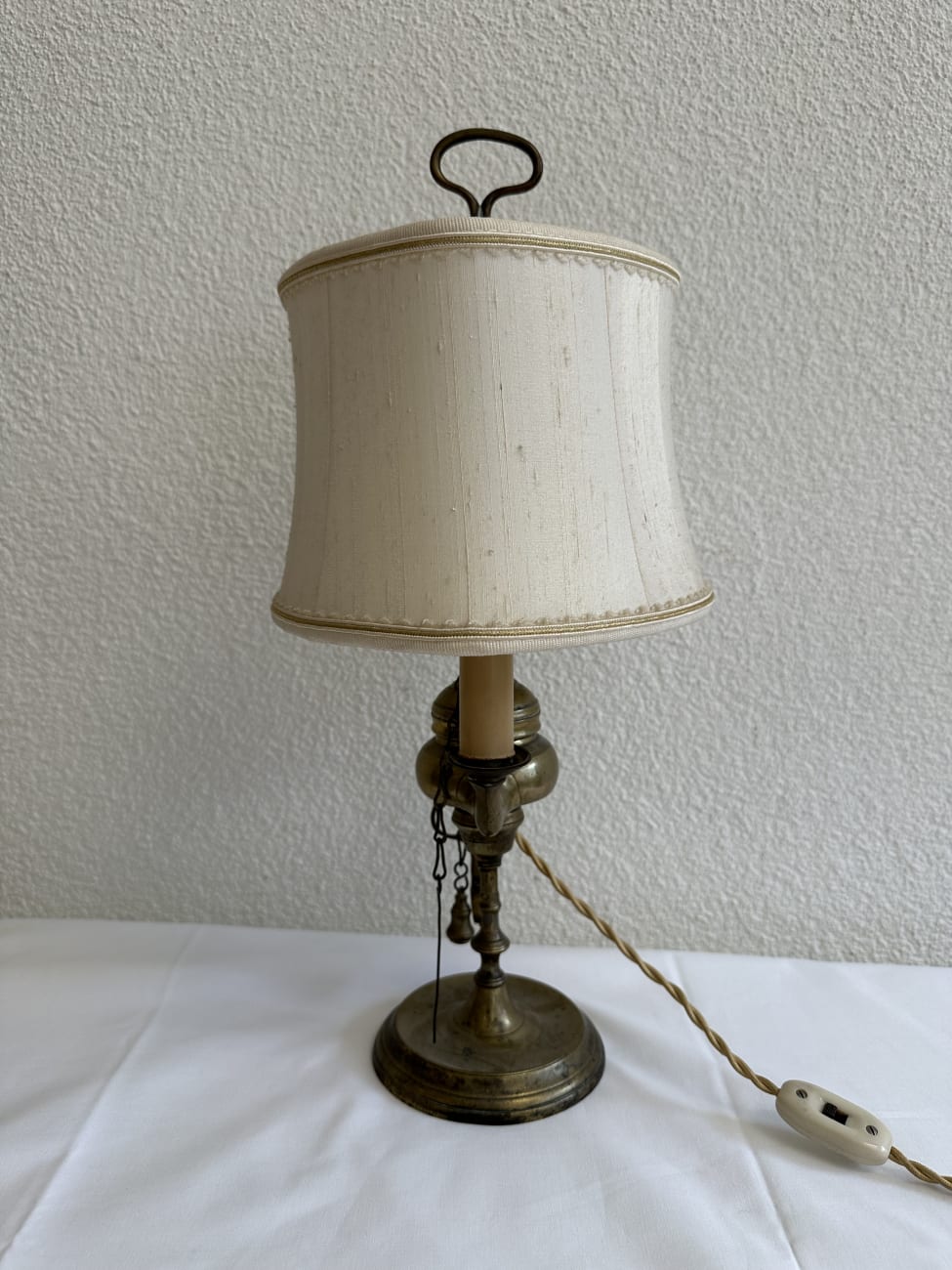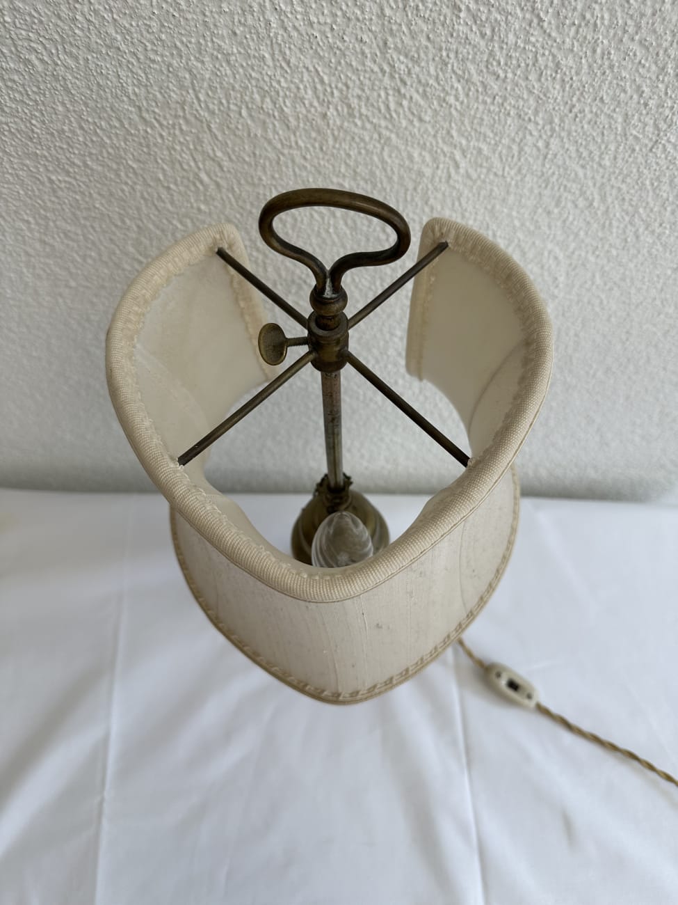 Vintage Tischlampe aus Messing mit beigem Stoffschirm