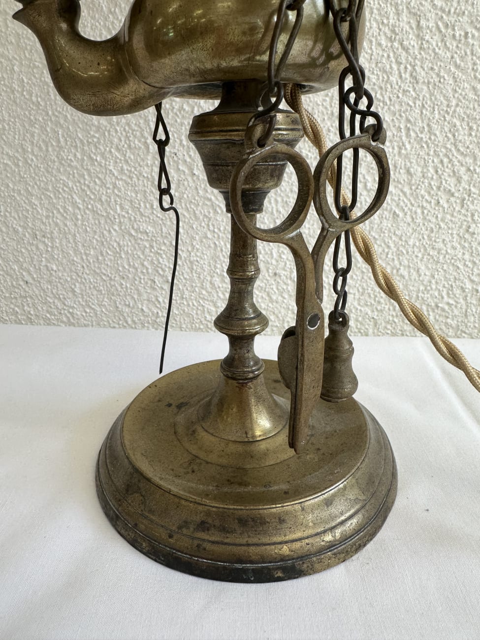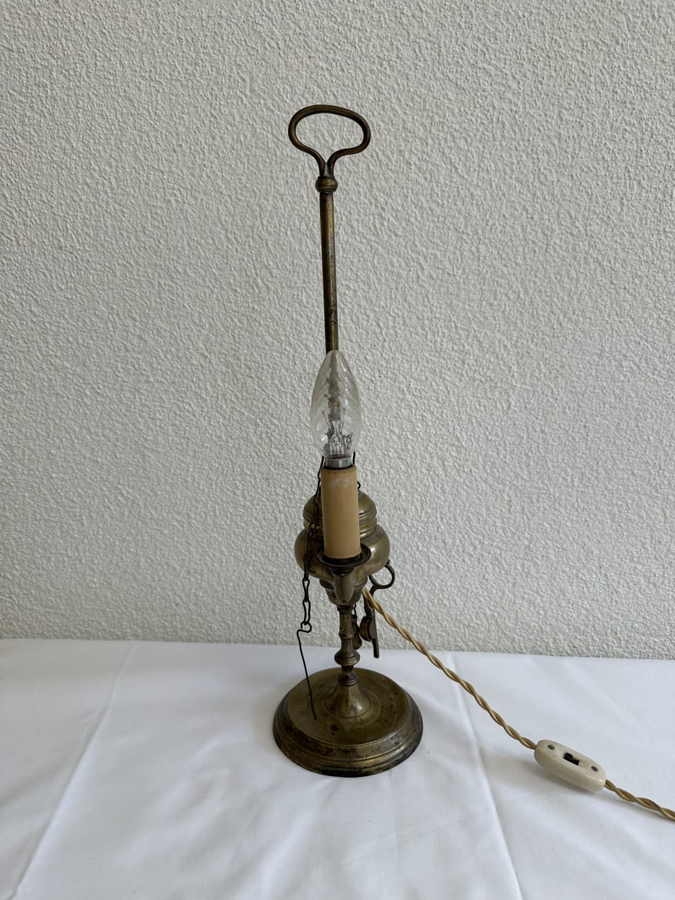 Tischlampe aus Metall mit Messingfinish und Patina