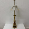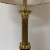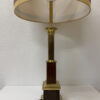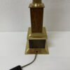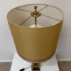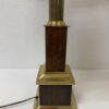 Vintage Tischlampe aus Messing und Holz mit Stoffschirm, H 95 cm