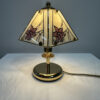 Vintage Tischlampe mit Messingfuss und floralen Glaselementen 1980er Jahre