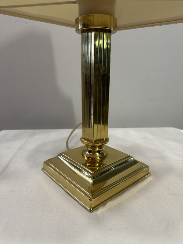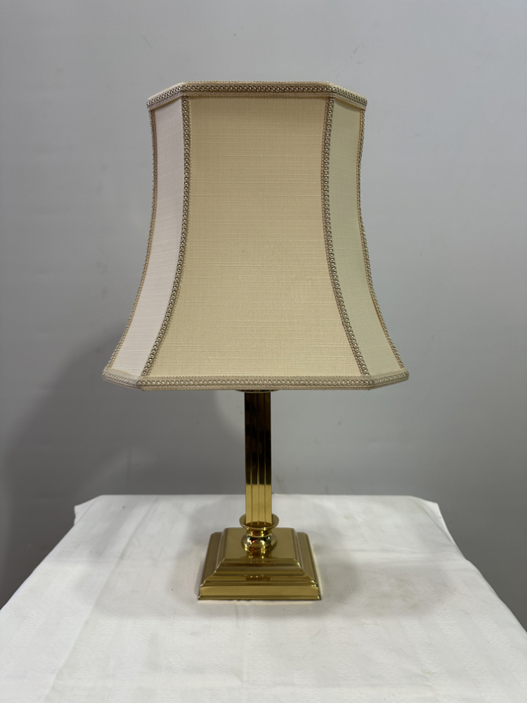 Vintage Tischlampe mit Messingfuss und Stoffschirm, 70er-90er Jahre