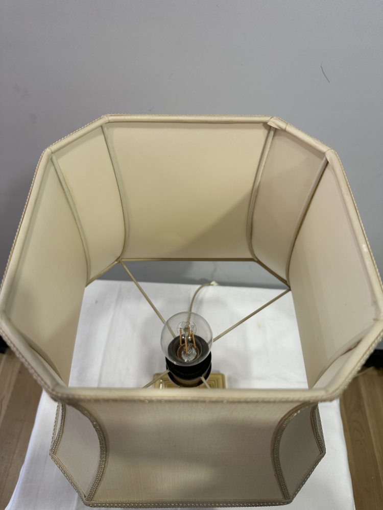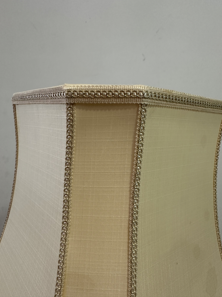 ✅ Achteckiger Stoffschirm in Creme mit goldener Zierkante