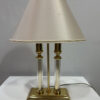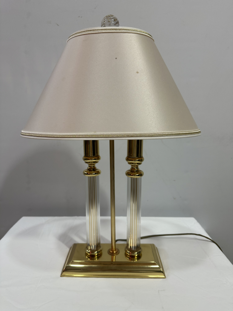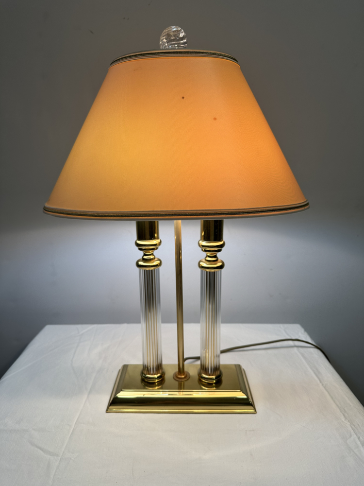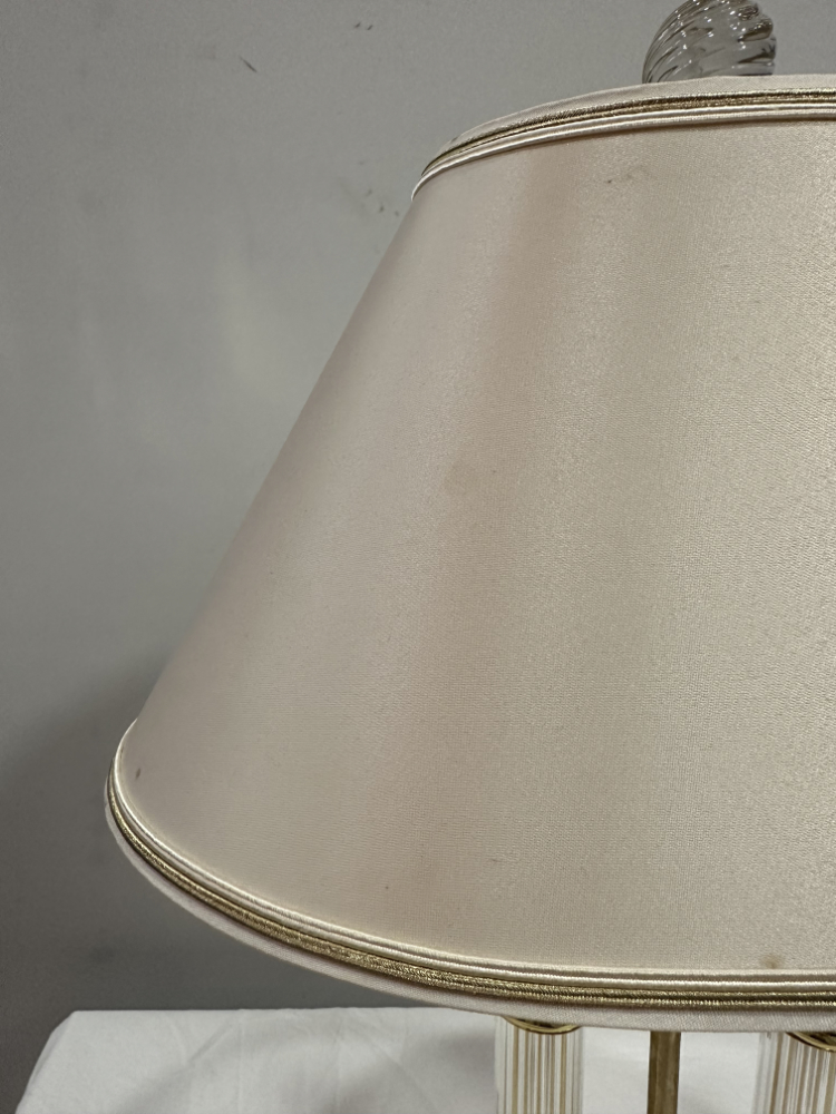 Vintage Tischlampe von Le Dauphin France mit Glas-Säulen und Satin-Schirm