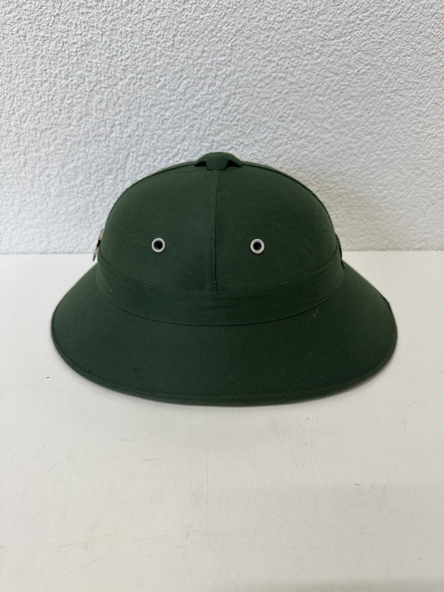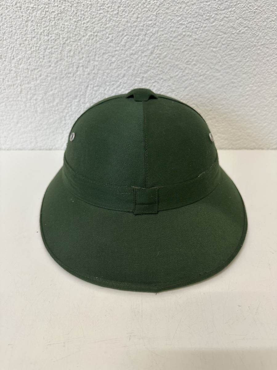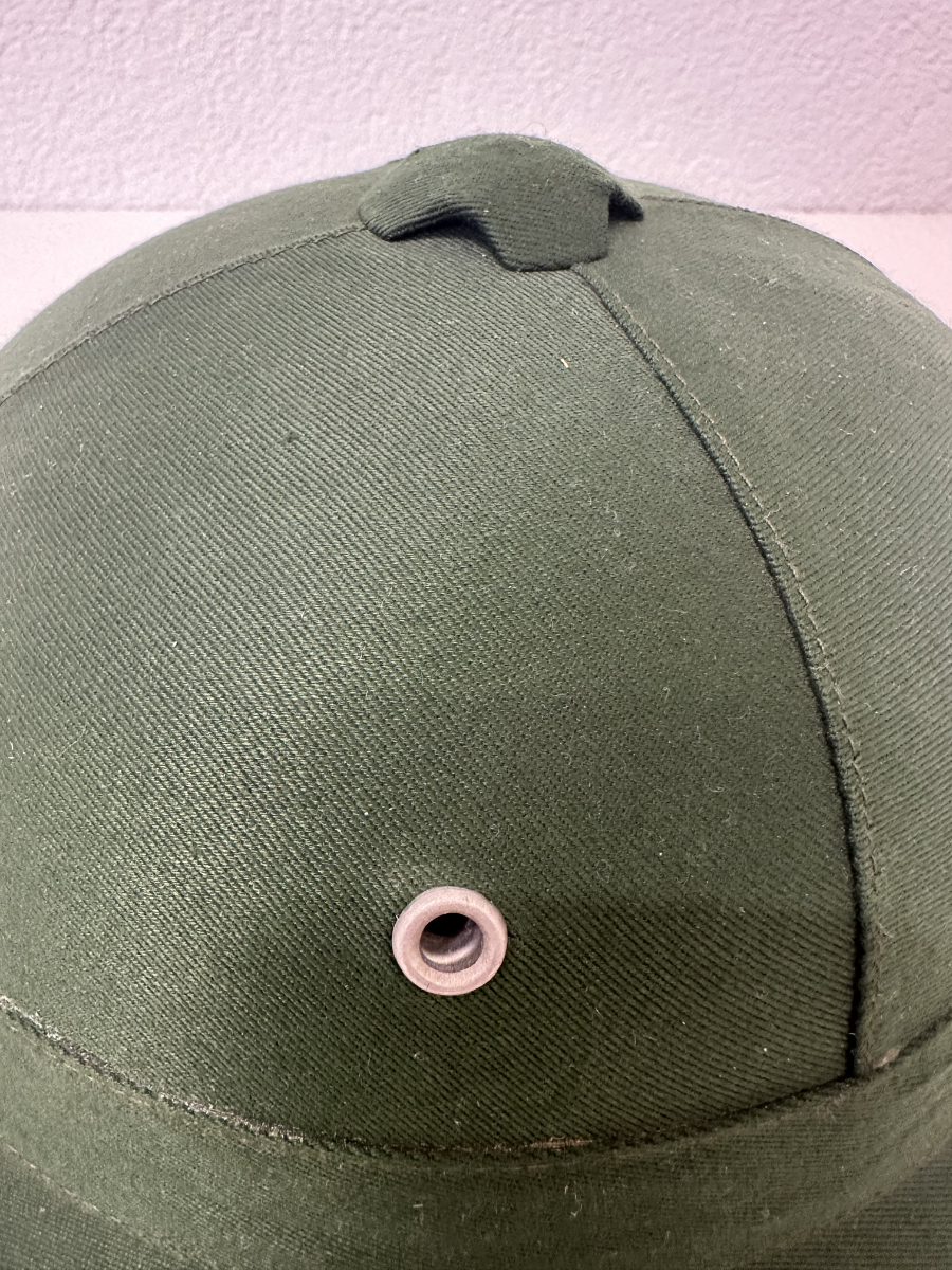 Vintage Tropenhelm in Dunkelgrün mit emailliertem Abzeichen (ca. 1960er–1980er Jahre)