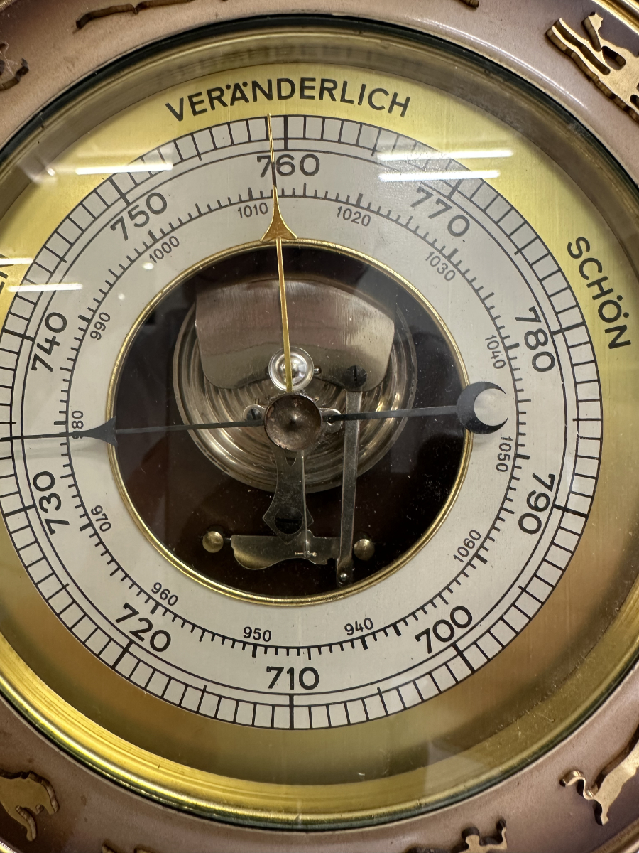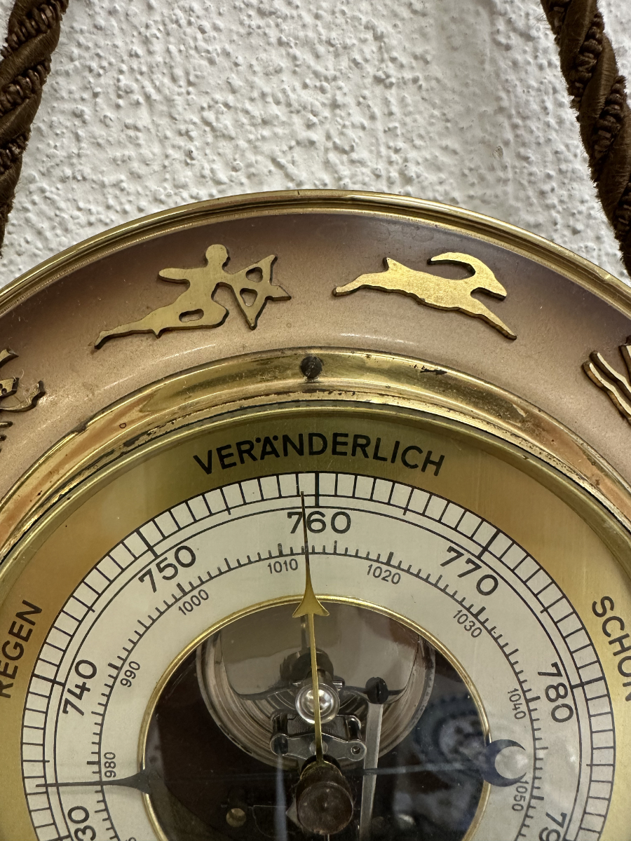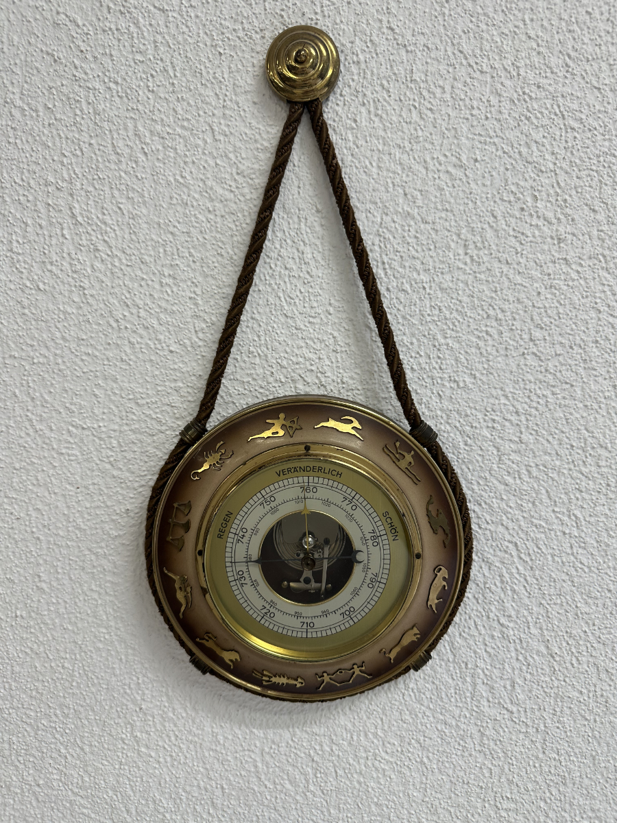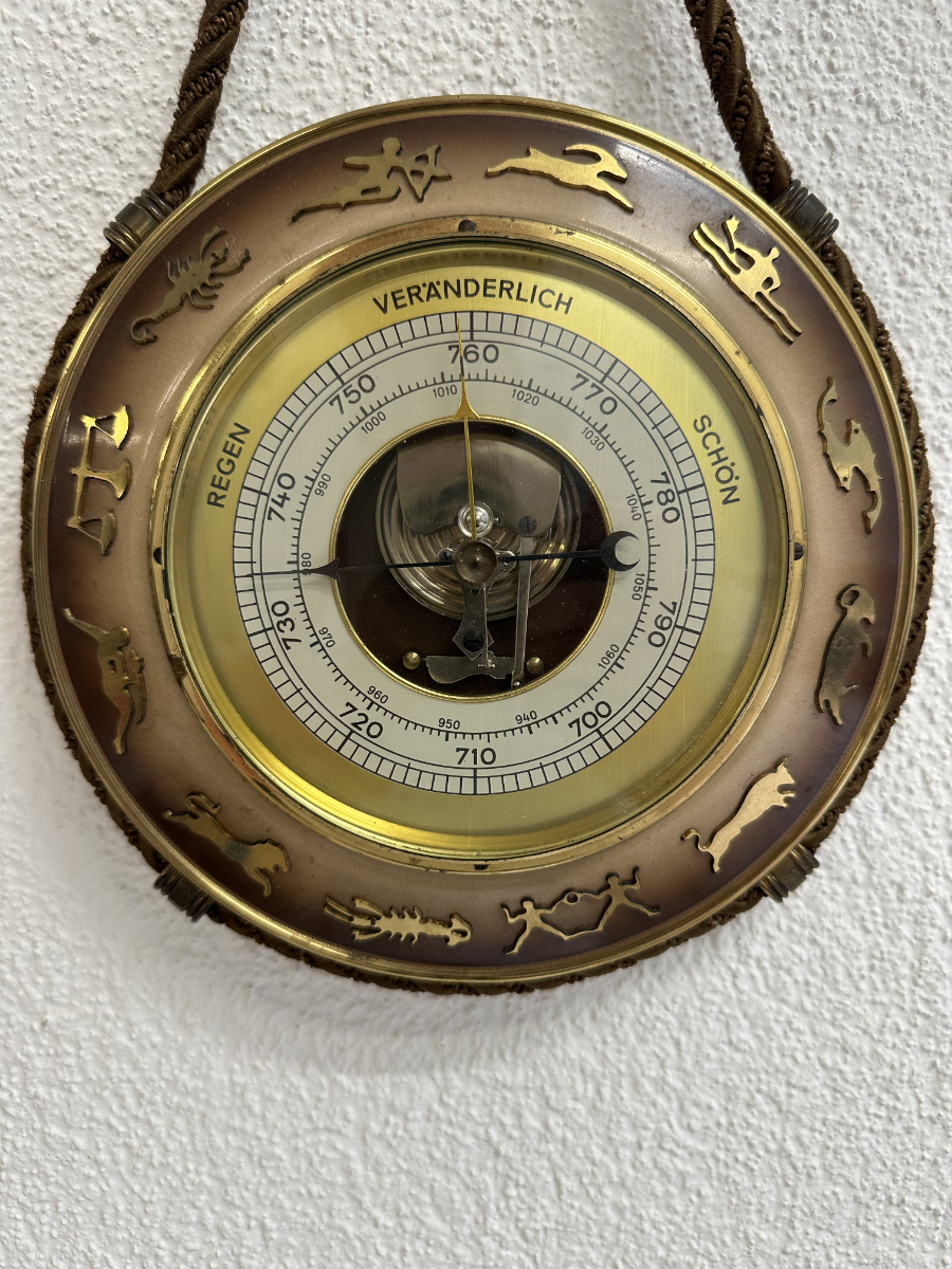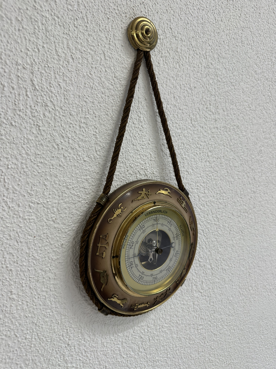 Vintage Wandbarometer mit Kordel und Sternzeichen-Motiv