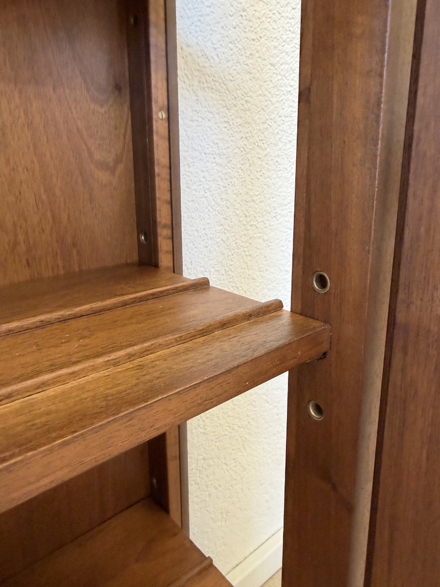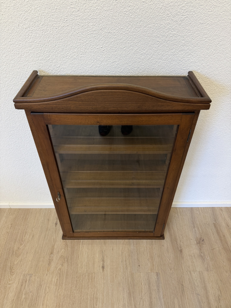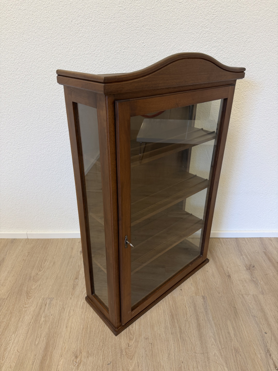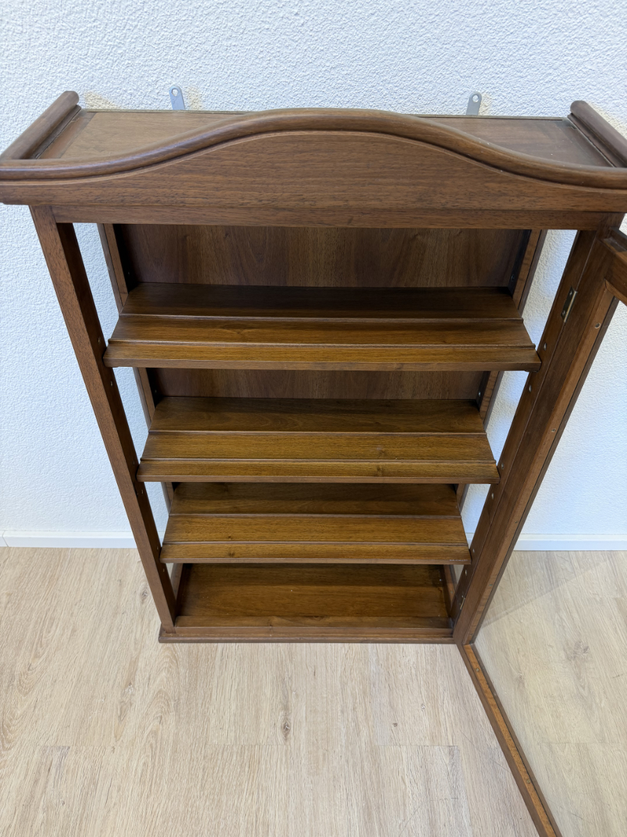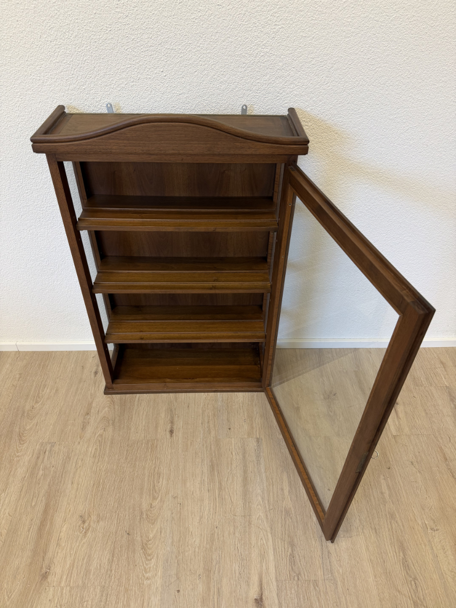 Vintage Wandvitrine aus Nussbaum Massivholz mit Glasfront