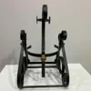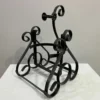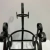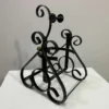 Vintage Weinhalter aus Schmiedeeisen befindet sich in einem guten bis sehr guten Zustand. Dieses elegante Stück dient nicht nur dazu, Weinflaschen sicher aufzubewahren, sondern auch dazu, sie ästhetisch ansprechend zu präsentieren. Seine zeitlose Schönheit macht ihn besonders geeignet für die stilvolle Bereicherung eines Wohnzimmers.