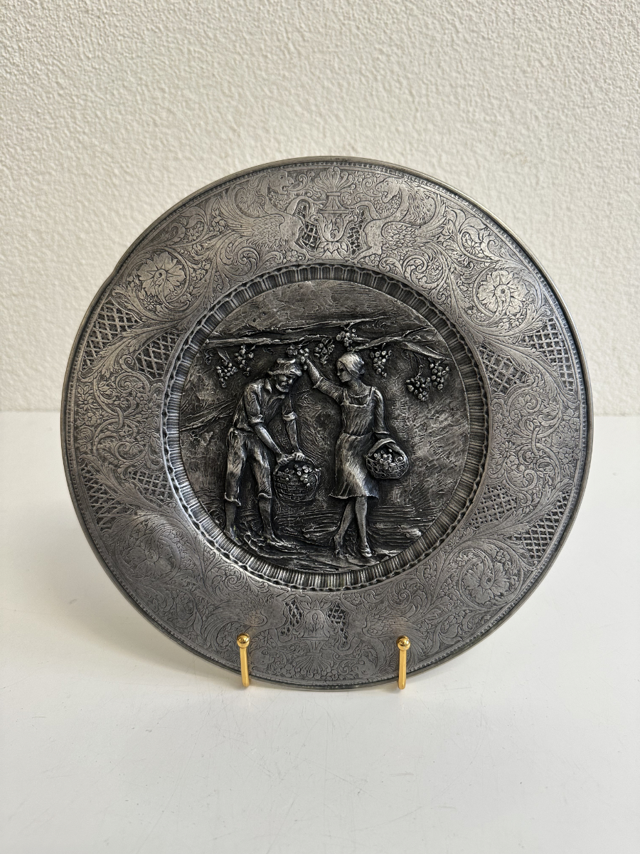 Vintage Weinlese Relief Zinnteller Berndorf 95 %