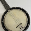 Runder Korpus mit Fell, geschlossene Bauweise und ein Hals wie bei klassischen Saiteninstrumenten: Dieses Zither-Banjo ist eine spannende Alternative zum normalen Banjo und wirkt optisch wie ein echtes Stück Musikgeschichte. Die Metallspannschrauben rundum, das helle Fell und der dunkle Rahmen geben ihm den typischen Vintage-Look. Dazu gehört der originale Hartschalenkoffer mit rotem Innenfutter, ideal für Transport oder sichere Aufbewahrung. Der Koffer ist altersbedingt leicht beschädigt, erfüllt aber weiterhin seinen Zweck.