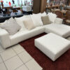 Wohnlandschaft mit Hocker in Weiss – Grosszügiges Ecksofa mit Kissen