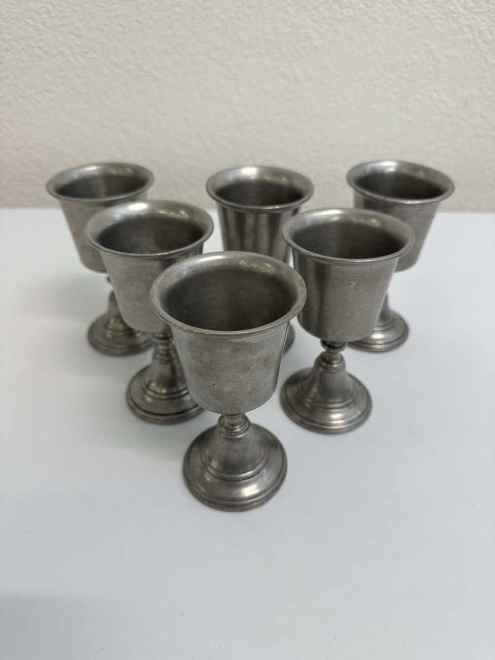 ✅ Set mit 6 Zinnbechern mit Fuss