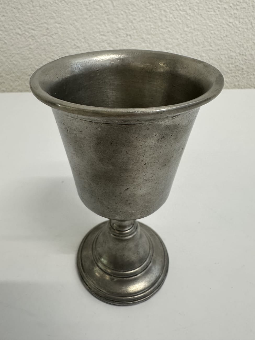 6 Zinnbecher mit Fuss im Set mit Bodenmarke
