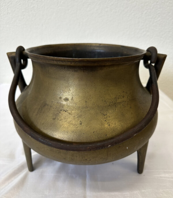 Antiker Dreibein-Kessel aus Messing mit Eisenhenkeln (19. Jahrhundert)