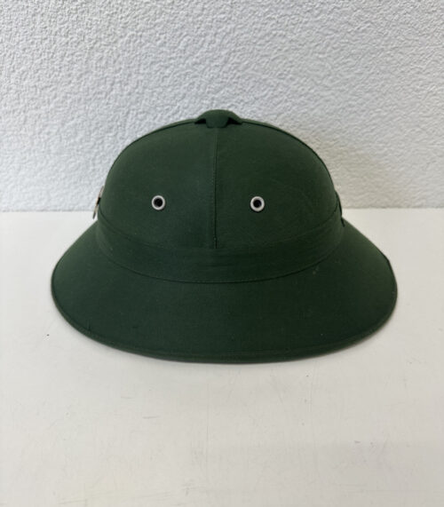 Vintage Tropenhelm in Dunkelgrün mit emailliertem Abzeichen (ca. 1960er–1980er Jahre)