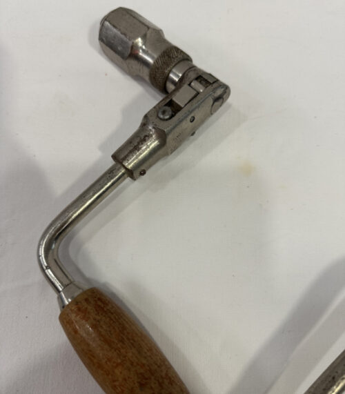 Antike Handbohrmaschine mit Holzgriffen, funktionales Werkzeug für Sammler oder Werkstatt