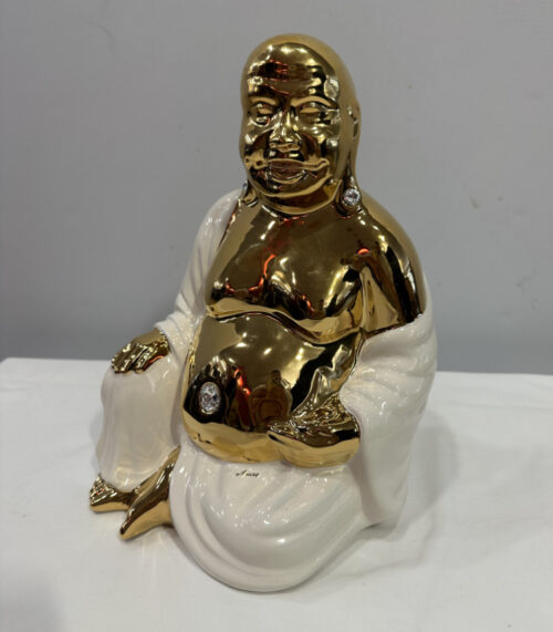 Gold-Weiss Buddha Figur von Ahura, Made in Italy – Handbemalte italienische Porzellanfigur