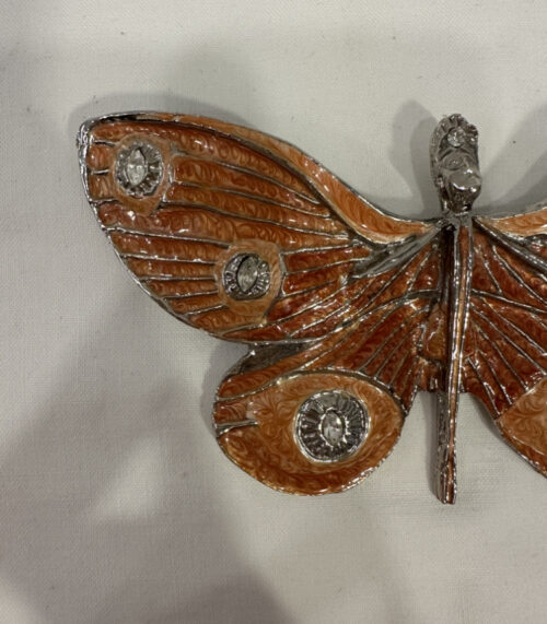 Vintage Gürtelschnalle in Schmetterlingsform – Orange emailliert mit Strassakzenten