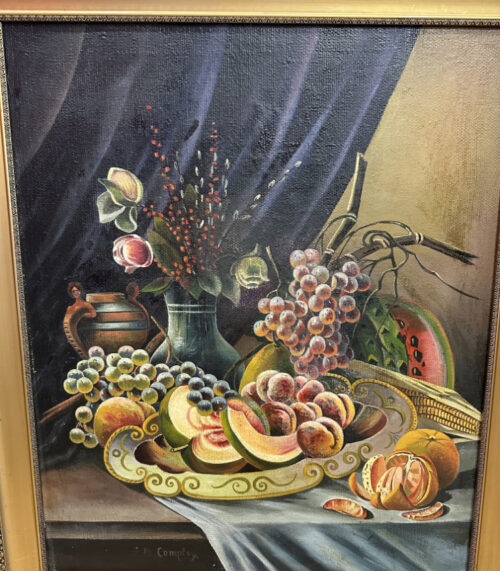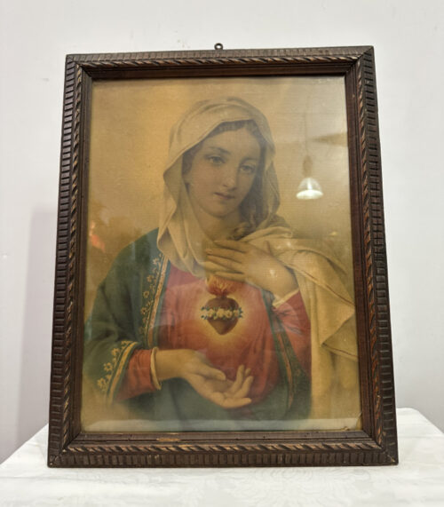Madonnenbild mit Heiligem Herzen – kolorierter Kunstdruck im Intarsienrahmen, 52 x 67cm