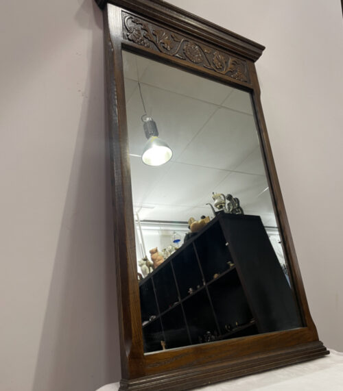 Vintage Wandspiegel aus Eiche mit floraler Schnitzerei, Jaycee Furniture, England, Höhe 94 cm