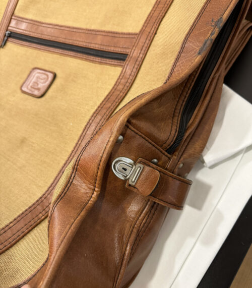 Vintage Anzugtasche / Kleiderschutzhülle aus Leder und Stoff von Easy Pack Swiss